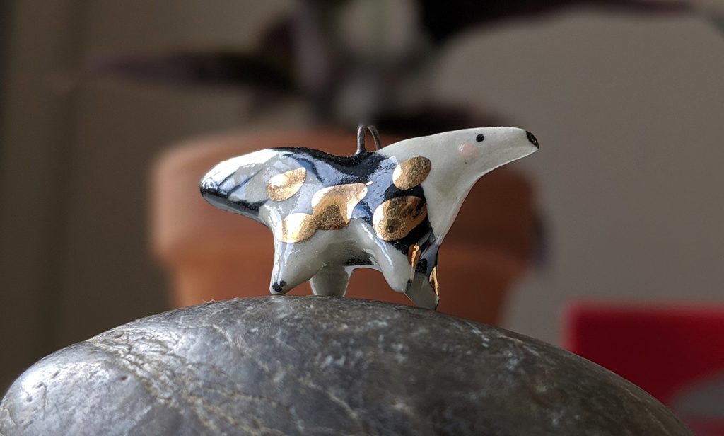 En 2019, j’ai réellement commencé à produire des animaux en céramique de manière plus constante. De nombreuses expérimentations ont également eu lieu. J’ai changé plusieurs fois de matériel et je suis passée des couleurs Duncan à Speedball, entre autres. C’est aussi à ce moment que j’ai commencé à utiliser l’or fin pour mes bijoux en céramique.