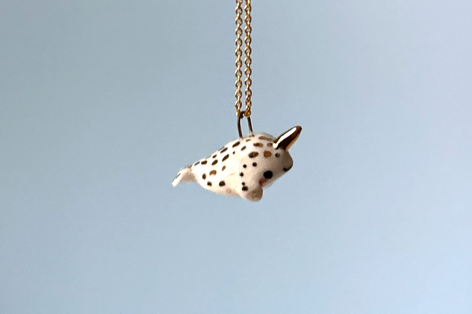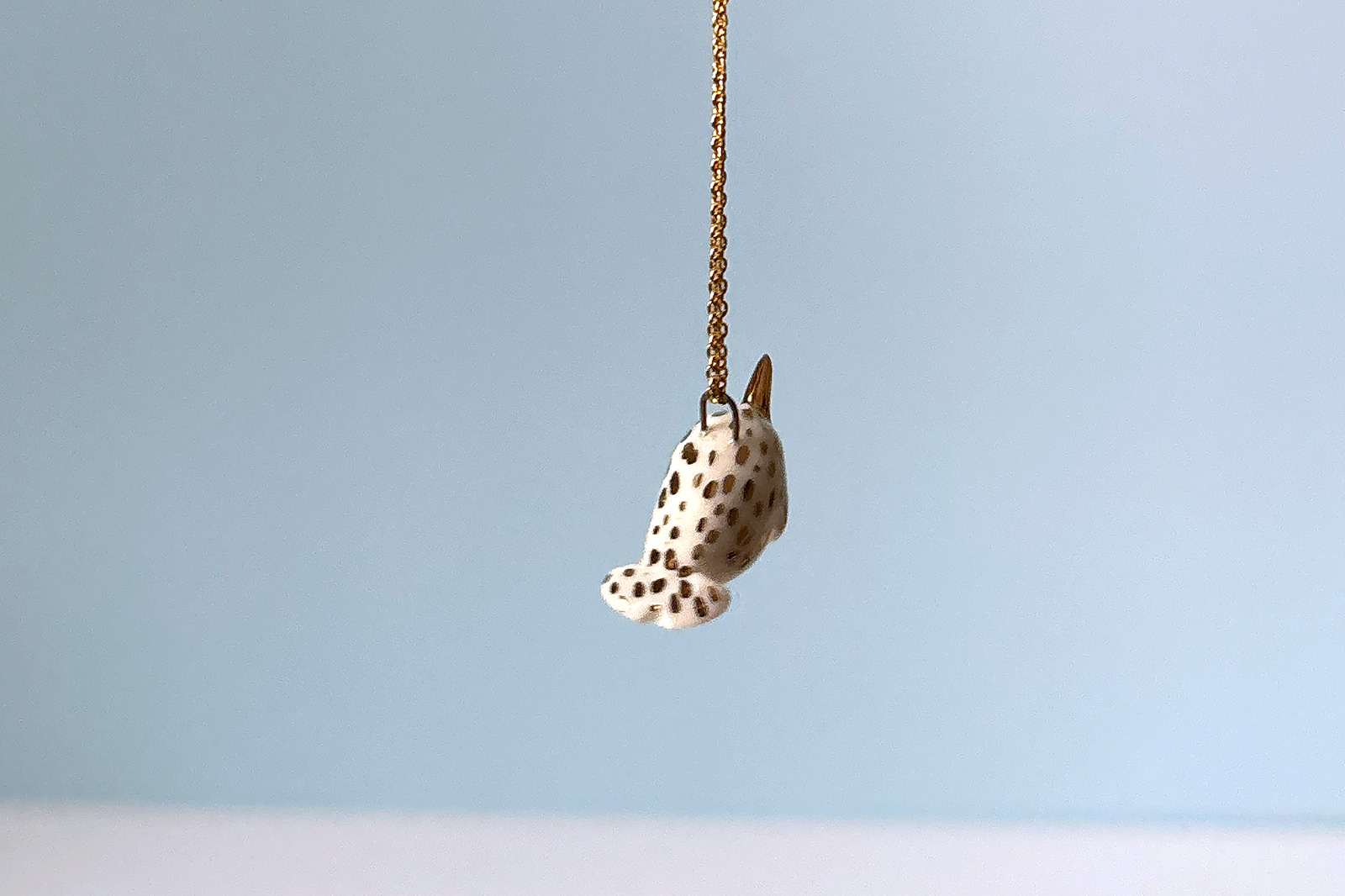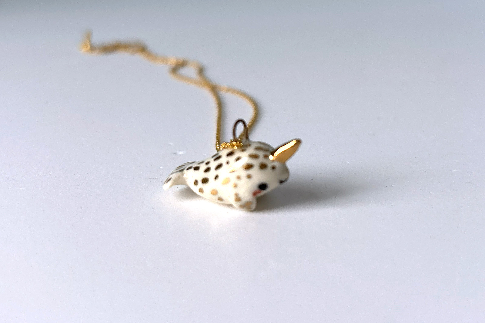 Ceramic Narwhal Pendant – White and Gold – B