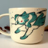 A 8 cm wide, 7 cm tall cm porcelain cup illustrated with a lot of bunnies, all of them different and hand painted in a nature themed detailed decor. This piece is one of a kind.