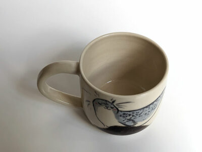 Handmade stoneware mug painted with a banana posed grey seal, just being adorable ! This piece is made out of white stoneware glazed to be food safe.