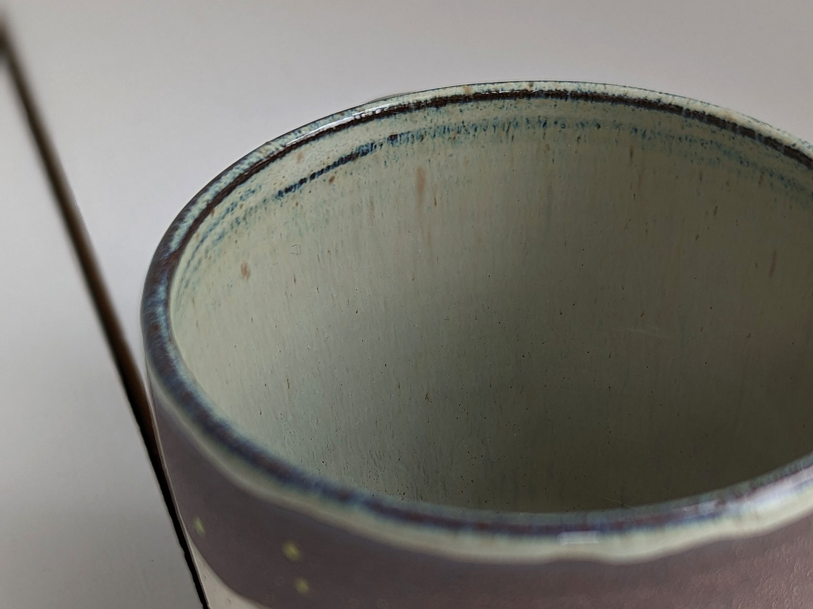 This is the black stoneware bunny mug, and both the inside and the handle are glazed in order to make them smooth. I used a pale textured pink that offers a lovely contrast with the black clay. It’s food safe.