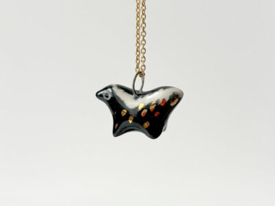 I decorated this lovely handmade pendant with gold dashes. It’s a handmade and one of a kind, and it comes in an illustrated box.