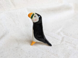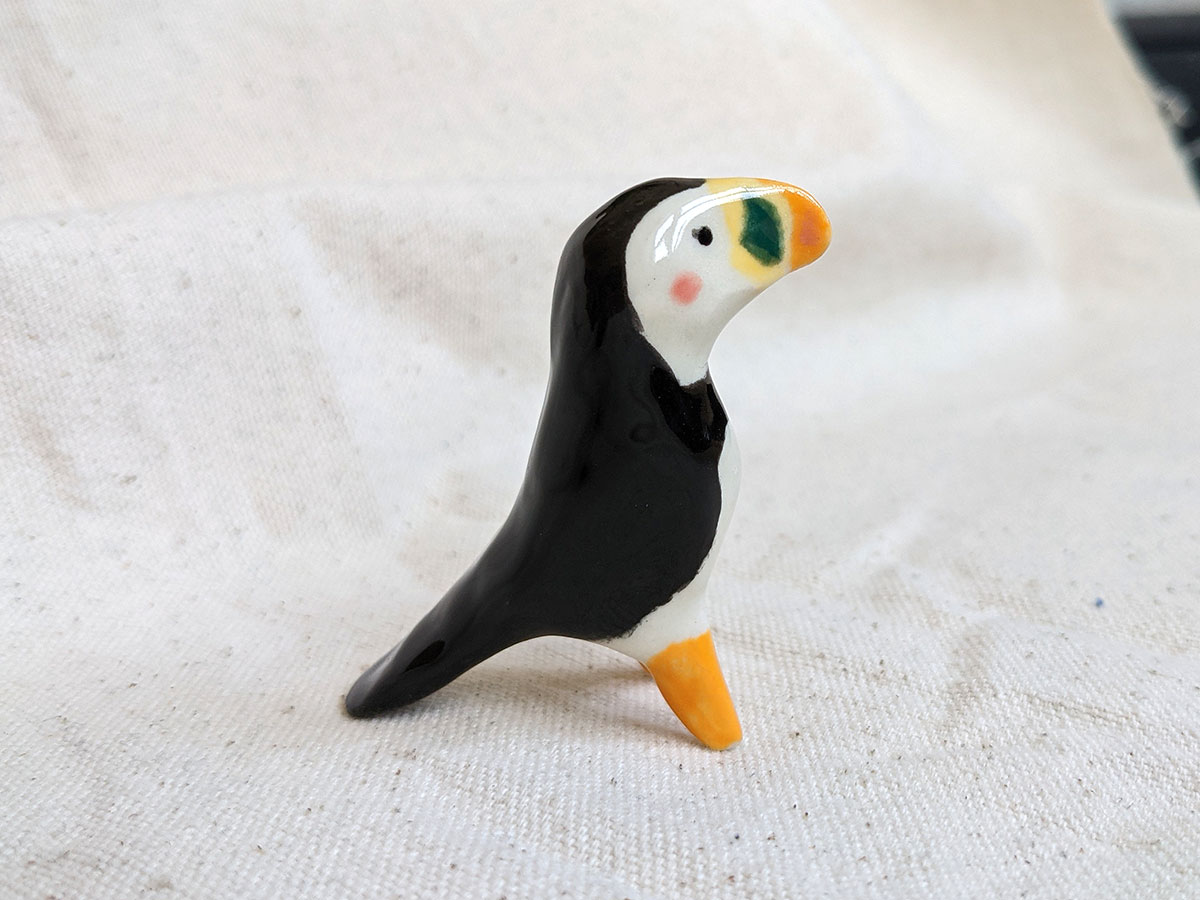 Little puffin figurine, about 4 cm high. One of a kind, porcelain sculpture 100% handcrafted.