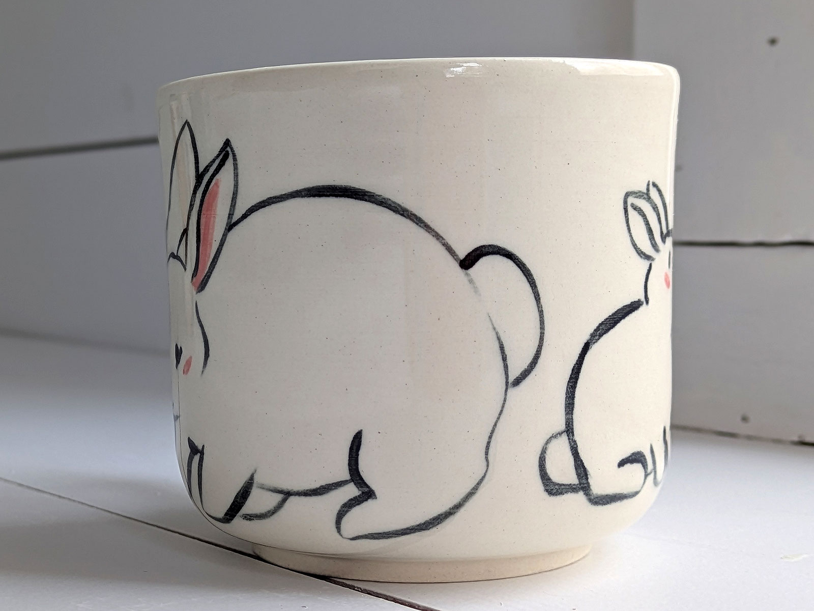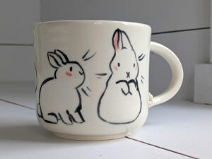 A sculpted bunny mug is the perfect addition to your lovely mug collection. It can sit on a shelf quite beautifully or be used everyday, it’s microwave and dishwasher safe, and it’s clear glazed to be food safe.