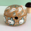 This black stoneware dish is pretty fragile because of the sculpted bunny, I would advise no dishwasher, no microwave and avoid utensils that could bump into the sculpted part.