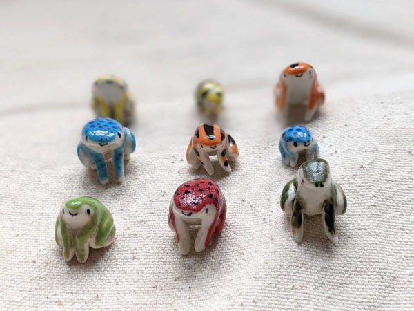 Super tiny ceramic frog, 1 – 2 cm long and high. Several colors to chose from.