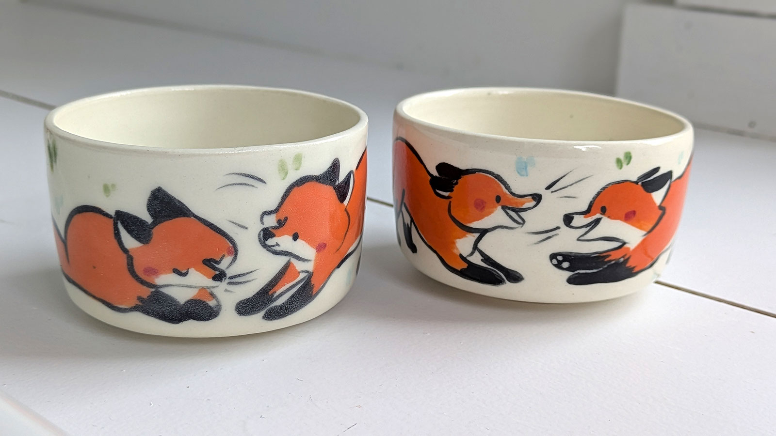 Fox Kit tumblers, handmade and illustrated with adorable baby red foxes.
