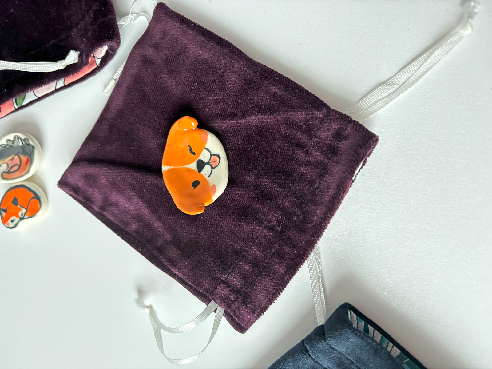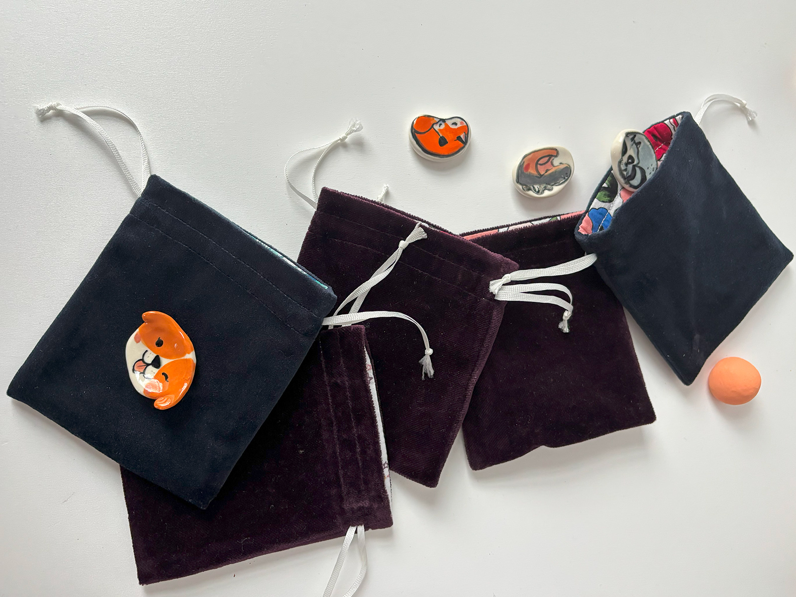 Handmade little velvet pouch for your worry stones, your porcelain jewelry, your lovely little trinkets, treasures and good spells. These lovely little bags are made in France by an artist seamstress, with high quality velvet and soft printed cotton inside. Its drawstrings allow the pouch to be safely closed and keep your trinkets safe and unscratched.