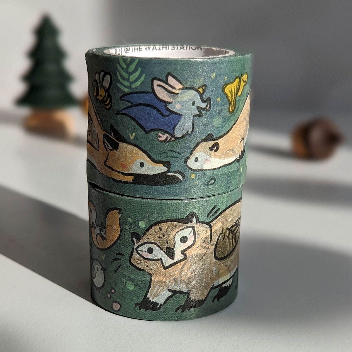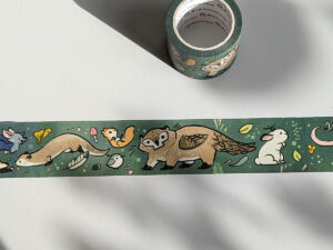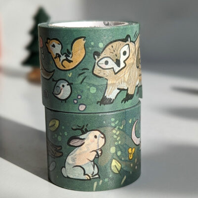 A 35 mm wide washi tape with mythical creatures from the wooods.