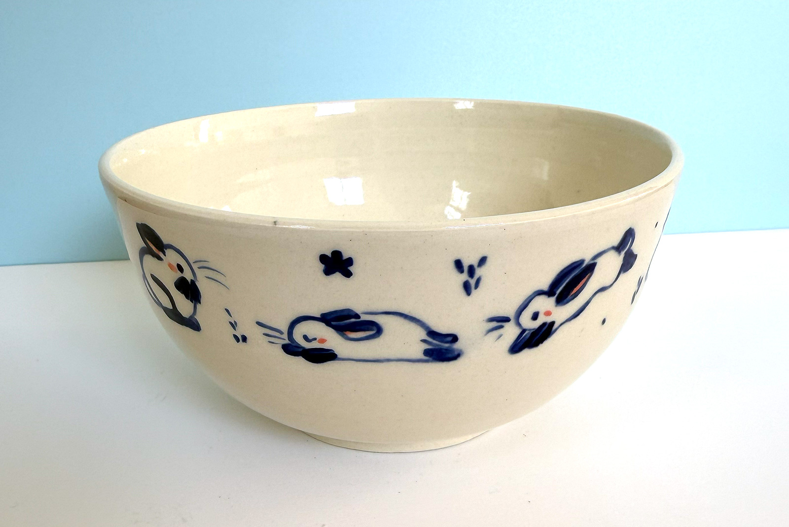 This pretty bowl is illustrated with a pattern of extremely cute little bunnies, a perfect gift for bunny lovers.