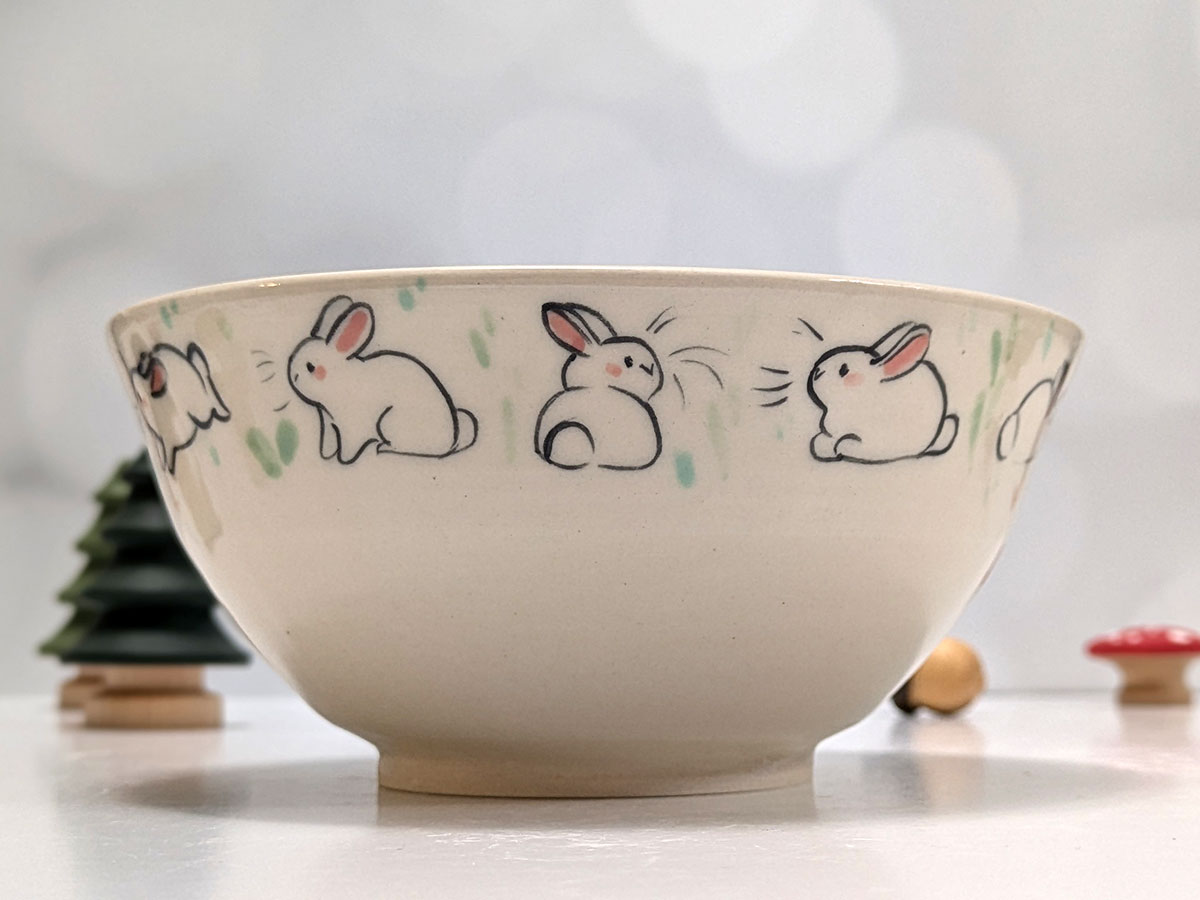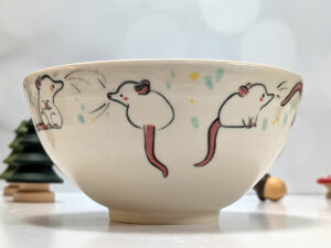 This one is 15 cm wide and 7 cm high. It can be used as a salad bowl in the summer, soup bowl in the winter and anything you’d like in between. It can hold a small ramen serving. I also use them for snacks.