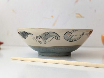 This one is 17 cm wide and 6 cm high. It’s relatively flat but can perfectly be used as a salad bowl in the summer, soup bowl in the winter and anything you’d like in between. It can hold a small ramen serving. I also use them for snacks.