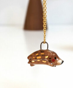 Barn Owl pendant – Ceramics + Gold – Wings – B