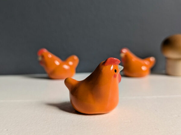 Petites poules pour accompagner votre thé . Environ 2-3 cm de long.