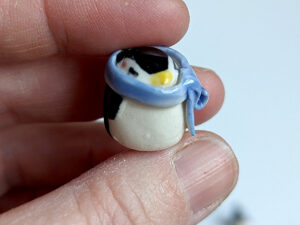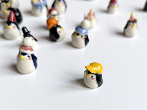 Ces petites figurines de pingouins ont un chapeau, un ami ou une écharpe.