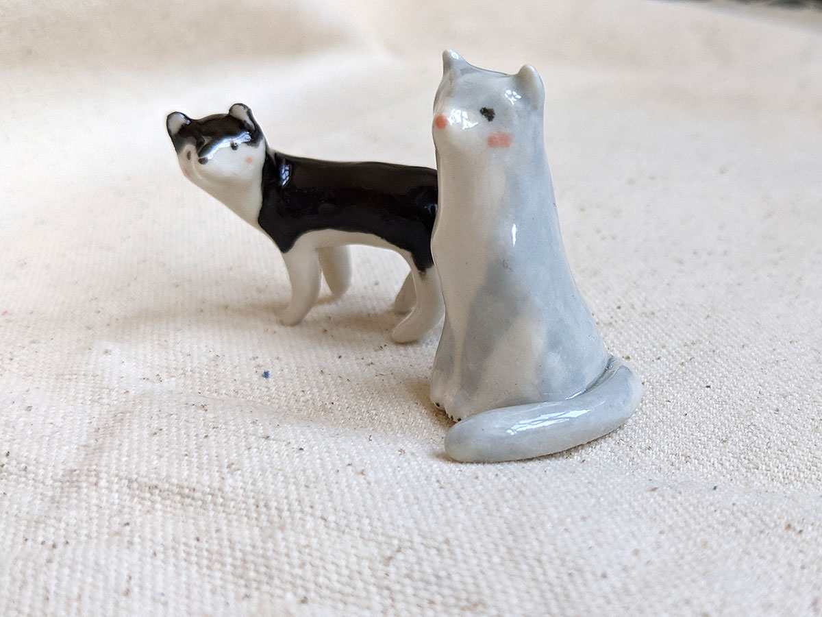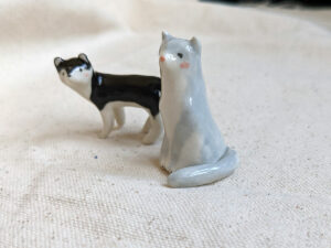 Mini chat, plus petit que les figurines habituelles, environ 4 cm de haut. Porcelaine blanche. Pièces uniques.