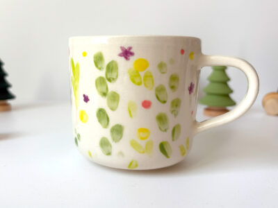 Mug illustré d’un petit hippopotame pygmée. Environ 9 cm de diamètre et 8-9 cm de haut. Ce mug est fait en porcelaine et illustré à la main. Chaque mug est unique et donc un peu différent. Il y a toujours un bébé hippopotame pygmée et des éléments décoratifs.