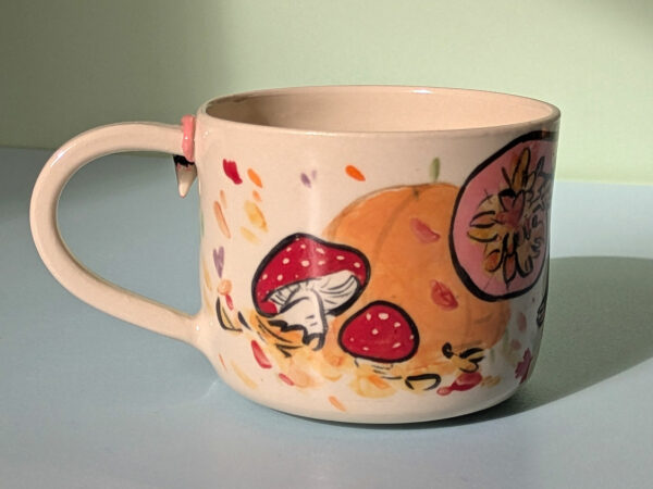 Fabriqué en porcelaine blanche de haute qualité, ce mug est à la fois délicat et durable, ce qui le rend parfait pour un usage quotidien. Chaque pièce est unique, présentant de subtiles variations de couleur, de texture et de détails charmants. Contrairement aux articles produits en masse, ces mugs faits à la main possèdent leur propre caractère.