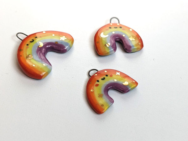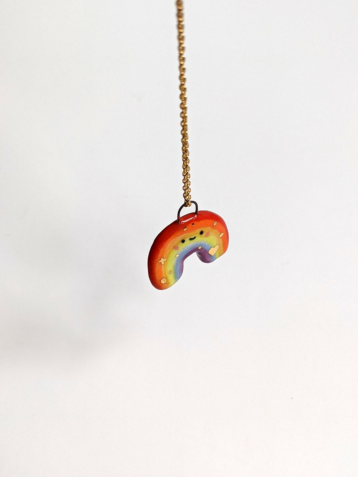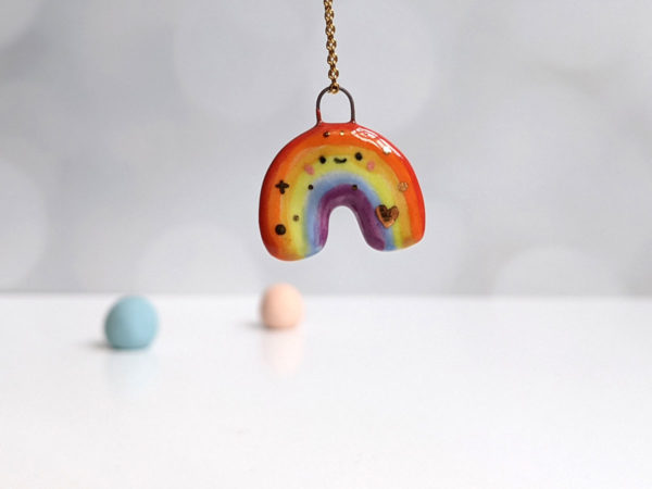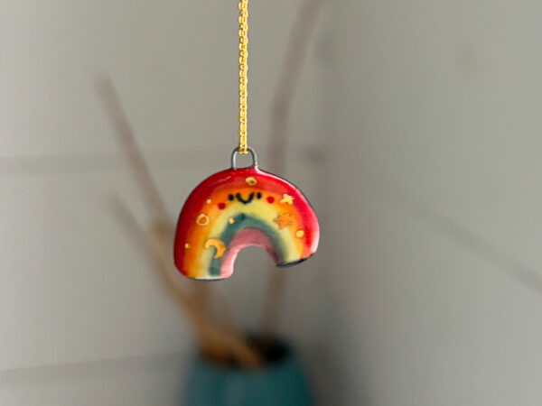 Pendentif porcelaine arc-en-ciel aux motifs dorés à l’or fin, chaîne non inclue.