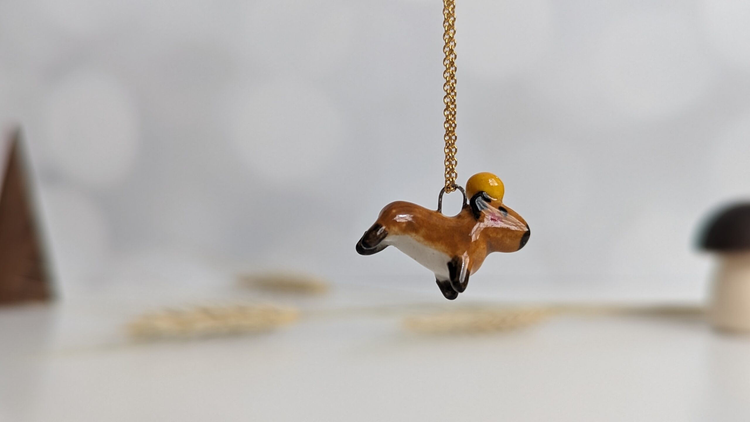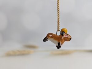 Pendentif de capybara portant une orange sur la tête sans décor à l’or, tout simple. Toujours fait main, toujours unique, toujours trop mignon ! Environ 2 cm de long, chaîne vendue séparément.