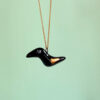 Ce bijou en céramique est entièrement fait main, décoré à l’or 22 carats sur le corps, les sabots et la corne. La crinière et la queue sont peinte d’un dégradé arc-en-ciel.