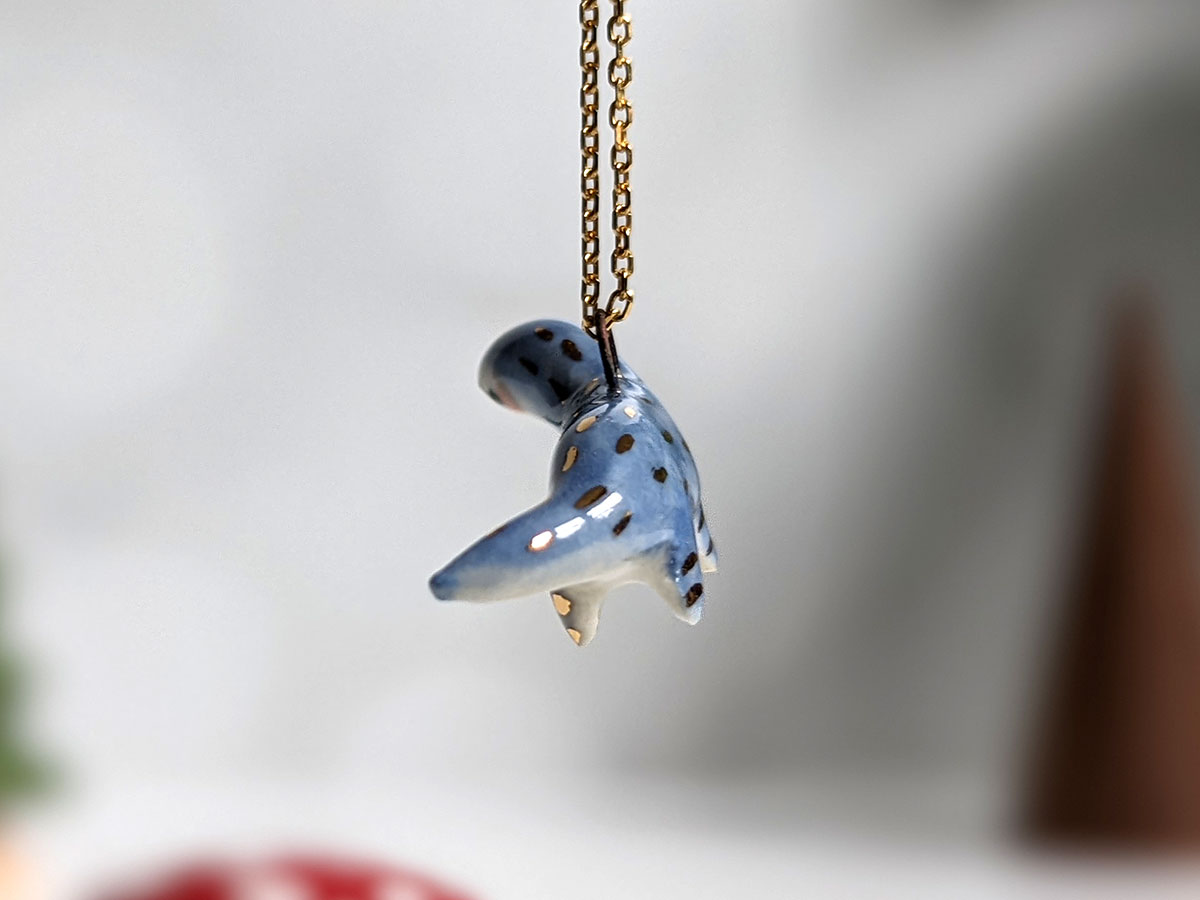 Pendentif Porcelaine – Plésiosaure Bleu