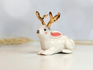 Pendentif Porcelaine : Lapin aux bois d’or – Portrait